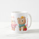 Ett mugg med en söt illustration med en kniv, en björn och en hjort som är klädd i festive-utrustning. Vämjeligt och vismiskt.