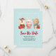 Spara datumkortet med en söt illustration med en kniv, en björn och en hjort som är klädd i festila. Vämjeligt och vismiskt.