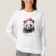Vattenfärgning av en panda med en röd vinterhatt i jultoma stil