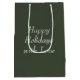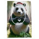 En söt panda som bär en tomtehatt bildar en hjärtform med tassar medan sitta i en lush bamboo-skog. Texten kan redigeras eller tas bort.