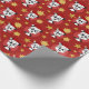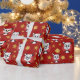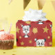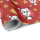 Papper julomslutning med illustration av söt liten panda med julhatt, juldesign för barn, på bakgrunden med sömlös gult mönster med stjärnor, illustrerad av Radka Kavalcova