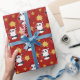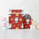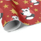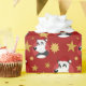 Papper julomslutning med illustration av söt liten panda med julhatt, juldesign för barn, på bakgrunden med sömlös gult mönster med stjärnor, illustrerad av Radka Kavalcova