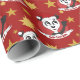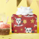 En papper Personlig med julomslag som illustrerar en söt panda med julhatt, i röd cirkel, med gult mönster med stjärnor, helgdagar för julklapp för barn, med anpassade textmall för ditt namn eller meddelande, illustrerad av Radka Kavalcova