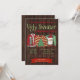 Inbjudan till julfest med fula jultröjor med tre fula jultröjor på en rustik trähylla. Du kan enkelt anpassa dessa roliga inbjudningar till din fest genom att bara lägga till dina uppgifter i den typsnittsstil och färg du föredrar.