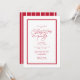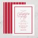Bjud in vänner och familj till en klassisk julfest med denna enkla röda och vita inbjudan med röd ram, "Julparty" med skrivstil och enkel röd text för alla detaljer. Denna festliga design är en del av en samling av Lea Delaveris Design och passar ihop med kort, partitillbehör, presentpapper med mera. Baksidan är i matchande rött med vita snirkliga randiga linjer. Fira säsongen med denna festliga och roliga design som också finns tillgänglig som en digital nedladdning för julfestinbjudan.