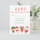 Sätt den roliga tonen för din julfest eller julevent med detta söta röda och gröna svarsbrevskort med tomtenisse, alv, snöman och Rudolf den rödnästa renen.