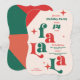 Gör dig redo att dekorera salarna och umgås med glädje med denna roliga moderna och retroinspirerade julpartyinbjudan. Stor fet Fa La la-typografi i rött och grönt. Anpassa all mindre text på detta kort för din julfest. Perfekt för en julfest, julklappsfest eller företags julfestinbjudan.