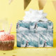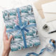 Cute penguin på ett isberg med snöflingor och Jultomten tak.