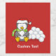 En liten penguin tecknad med den grönts och sitta och att hålla en snöboll.