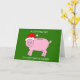 En tecknad av en gybank som bär en julhatt mot en mörk grönt bakgrund. Orden "En julklapp för en mycket speciell gudon" följer med bilden.