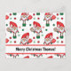 Brevkort från julklapp med Santas som spelar pickleball på vit bakgrund.