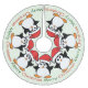 7 julpingvin i mönster som ha på sig en Santa hatt med textgod jul som omger dem. Du kan även personifiera denna design med ditt barns namn på pingvin buk. Bakgrunden med ett ljust - grönt- och vitmönster med Santa ansikten, snögubbear, renen, julgranar, slogg in gåvor, snöflingor, candy cane och stjärnor. Pingvinen är svartvita, med en röd hatt- och orangenäbb och orangefot.