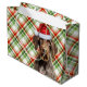 Hundälskarna kommer att bli ännu varmare när de tar emot eller ge den här söta julhelgen presentväskan, med en snyggt på hund Wirehected Pointer på en röd och grönt som är uppgjord för en helgdag mönstrad bakgrund.