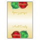Guld julklapp med namn-mall. Grönt och röda julprydnadsföremål i boll dekorerar var och en av sidorna på detta stående kort (vik efter inköp). Guld-skriptmallen tillhandahålls för att lägga till gästernas namn, som visas på båda sidor.