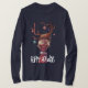 Rolig julpojke med med julgranen på huvudet som en hatt