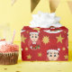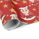 Papper julomslutning med en illustration av en söt smilande svarthårig pojke i lycklig, bär röd och vit Jultomten-dräkt och håller en present. Med en redigerbar textmall för ditt namn eller meddelande utformar helgdagar för jul med en sömlös röd bakgrund med stjärnor