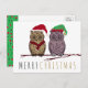 Det här julkortet med Uggle-Jultomten och Elf Owl på en snötäckt gren är perfekt att skicka till vänner och familj under höstlovet.