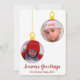 Ett minimalistiskt helgdag med två fotonedskärningar i form av julprydnader kommer att göra detta till ett fantastiskt kort för de personer som finns med på din julkortslista i år!