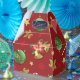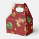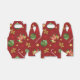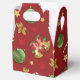 En vacker juldesign med vackra prydnadsföremål och polkagrisar mot en rustik röd bakgrund.