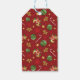 En vacker juldesign med vackra prydnadsföremål och polkagrisar mot en rustik röd bakgrund.
