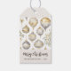 Julprydnadsföremål i guld och silver gör mönster till en klassens vattenfärg i vintage biet. De ser elegant på den här presenten Taga. Du kan redigera "God jul" i hälsning som är i färg utanför svartvitt för att matcha designen. Byt också exempel på "från" namn och år. faux guld