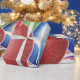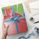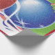 Den här bilden ger en bild av bollarna på jul i rött, blått och grönt. Rosett band och stjärnor i vitt, blått och rött syns genomgående. En bakgrundsrunda för grönt har lagts till. Ett glitter lades till i den här utformningen. Ett rött gräns lades till. Denna papper för julomslagning finns i olika stilar och storlekar.