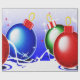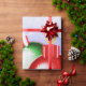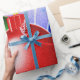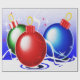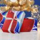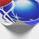 Den här bilden ger en bild av bollarna på jul i rött, blått och grönt. Rosett band och stjärnor i vitt, blått och rött syns genomgående. En blå bakgrund lades till. Ett glitter lades till i den här utformningen. Denna papper för julomslagning finns i olika stilar och storlekar.