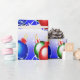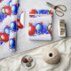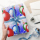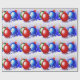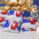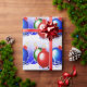 Den här bilden ger en bild av bollarna på jul i rött, blått och grönt. Rosett band och stjärnor i vitt, blått och rött syns genomgående. En blå bakgrund lades till. Ett glitter lades till i den här utformningen. Bilden har delats upp. Denna papper för julomslagning finns i olika stilar och storlekar.