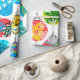 Färgfulla julprydnader vibrerar färg och slår pappert.