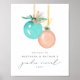 En vinter/jul-gender visar att party välkommen poster, med två vattenfärgade Julgran-prydnadsämnen i pastellblå grönt och rosa röd och "gender visar" i modernt kalligrafteckensnitt. Tillgänglig som digital hämtning.
