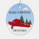 Julprydnadsföremål för rött enmotorigt flygplan. Flygplanet teckning av Claudine Boerner med träd modifierat CC0-foto. Copyright (c) 2020 Claudine Boerner, Corel Corporation och dess licensgivare. Alla rättigheter förbehållna.