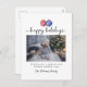 Kort för "Glad helg"-julhälsning i handskrift och kalligrafi i stil. Har vattenfärgade julprydnadsföremål. 1 Platt fotokollage-kort. Kristine Lee illustrerar vattenfärgen. Mer information finns på www.kristineleedesigns.com