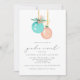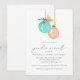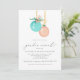 En charmerande julinbjudan Vinter-Gender, med två vattenfärgade Julgran-dekorationer i pastellblå grönt och rosa röd och "genderna visar" i modernt kalligrafteckensnitt.
