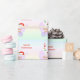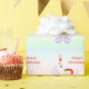 Julpsalmsbaby i en barnvagn på flerfärgad pastellfärgad gradientpresentpapper. God jul och gott nytt år 2019 texter kan anpassas.