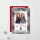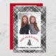 Det här platta julkortet har en bakgrund med trendig kol och grått. En vit låda, mitt på framsidan, erbjuder ett foto ram för din favoritfamiljs foto och accentueras med en liten bild av en grus träd. Röd böjd text lyder: Warm Winter Önskemål. Baksidan erbjuder ytterligare två foto ramar- och anpassningsbar-texter för din familj namn.