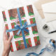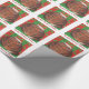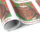 En tortoiseshell-katt i lycklig (som liknar en julpudding!) sitter på en grönt mot en röd och grönt, med löv som mönster, och "Purrfect jul Önskemål i vitt på en röd bakgrund. Klar julomslutning papper med ett anpassade för dig att anpassa dig med din egen text, ditt eget meddelande eller bilder. Bilden skapades från en färgad-blyertspenna teckning.