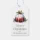 Märkre med vinter-helgdag med en vacker vattenfärgmålning av en julpudding med holly och röda bär. Text på framsidan "God jul" och ditt namn.