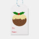 Julpresentens märkre Julpudding-design som du kan anpassa med valfri text. Om du behöver hjälp med att anpassa kontaktar du oss genom länken på den här sidan. Julpuddedesign - märkre för julklapp