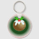 Illustration av en smakfull, tittar julpudding med en spiral av holly på designad på en nyckelkedja.