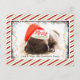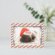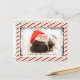 Ett vykort med ett vackert foto av en pug marionett som sover medan han bar en tomatisk hatt. God jul är skrivet på hattens band i ett handskrivet trendig. Ett grymt gräns med färgfull julafton ljus omger ram i detta söta foto. Bakgrunden är ett mönster som utplånats av candy cane i rött vitt och grönt. Anpassa med ditt namn. Namnteckning rad: Kärlek och Pugs, med ditt namn. Baksidan av vykortet kan vara personlig med din returadress och ett julmeddelande.