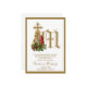 Med en vacker specialdesignad religiös julbild av Jesusbarnet i Jungfru Marias armar med julstjärnor på ett Mariakors. All text och typsnitt kan ändras.