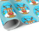 Sött roligt brunt ren med en ljus skinande näsa. Han har en gul fluga runt halsen och kulor hänger från öronen. Intrasslade i hans bruna horn är ljusa skinande julbelysningar. Bakom honom är en vinterdag med vita snöflingor som faller ner på den snöiga marken.
