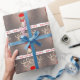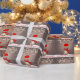 Skaffa julklapp med den här unika söta renfiguren med rött näsa och stora tändare i den vita snö-randiga, mönstrade julomslaget pappert. Anpassa med ditt eget hälsning och företaget eller familjen namn. För närvarande läser du God jul från Smiths. Sarah Trett illustrerade och designat på ett unikt sätt.
