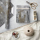 Julrenar och grått Bakgrund av rik stål-, fylld med vitt och grått snöflingor och brun och grått renar, ren och elegant. Underbar för att slå in värdefulla julklappar