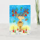 Skicka det här söta renkortet till vänner och familj för att önska dem en helgdag i Lycklig! Himlar är mörk blått och marken är täckt i snö. Scenen belyses av några röda ljus som står i snö. Möss och små gröntar har samlats för att dekorera småskålarna till en stag eller renar till jul. Renarna står på bakbenen, leker och tittar upp mot sina tänder. Det finns små grått-möss i sitta i förgreningarna, där man sätter upp röda julklamrar och tinsel, som föds upp av små gröntar. Andra möss och fåglar står i snö vid fötterna på renarna som tittar upp i sitt arbete med beundran och .