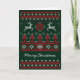 Julhälsningar kort med retro-julillustration med en rolig "ful sweater" kor-stygn med rött och vitt renar, poinsettia, gräs träd och etniska motiv på grönten. Du kan anpassa det här kortet med anpassningsbar text! Matchande frimärke och diverse andra julprodukter finns också tillgängliga.