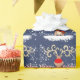 Få jul slågen in upp med detta unika gulliga rentecken med den röda näsan och stora horn på kronhjort i viten och mörk - mönstrad jul för blåttvinterhimmel som snö slår in gåvapapper. Läser lycklig helgdag. Unikt illustrerat och designat vid Sarah Trett.