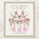 Etiketter för julrenar Jingle & Mingle Festive Party Personlig Namn Vin Stickers har fin renar med rosa bows och blommigt accents med texten "Låt oss Jingle & Mingle" i modernt kalligrafiskript för guld med personligen namn. Perfektens personlig julklapp och helgdagar för familj och vänner. Designad av ©2024 Evco Helgdagars www.zazzle.com/store/evcoholidays