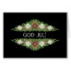 En chic, en blom- julkort med bylten av röda och vitjulro, en järnek och en murgröna på en svart bakgrund och den norska språkhälsningen "gud Jul" i snyggten, modern bokstäver, i vit. Från enmålad design av Judy Adamson. Behaga känselförnimmelsen som är fri att tillfoga din egna inre text.