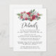 Vackra röda och vita rosor är parade med järnek och eukalyptus samt juldekorationer för att skapa den perfekta december bröllopsdesignen. Det används här för att skapa en mall för Detaljerad Kort som du kan använda för att dela viktig bröllopsinformation med dina gäster. Denna artikel är en del av december bröllopssamlingen. Den innehåller många föremål som du kan använda för din bröllopsbrevpapper, ceremoni eller mottagning.